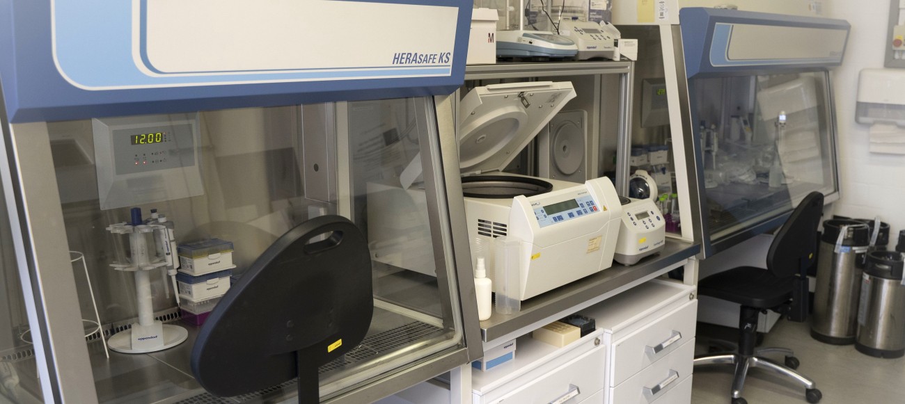 Unser Labor besitzt selbstverständlich sämtliches nötiges Equipment um mikro- und molekularbiologische Arbeiten sicher durchzuführen und qualitativ hochwertige Ergebnisse zu generieren: Sterilbänke, zum sicheren und kontaminationsfreien Arbeiten, einem Autoklaven zur Sterilisation von Verbrauchs- und Arbeitsmaterial und Flüssigmedium, sowie Ultratiefkühlgeräte zur sicheren Lagerung von Proben, DNA und RNA.