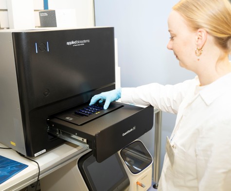 Mittels qPCR können eine oder wahlweise mehrere Zielsequenzen vervielfältigt und deren Konzentration via Fluoreszensmessung quantifiziert werden. Als besondere Form der quantitativen PCR führen wir die digitale PCR durch: Diese ermöglicht eine hohe Genauigkeit durch absolute Quantifizierung.